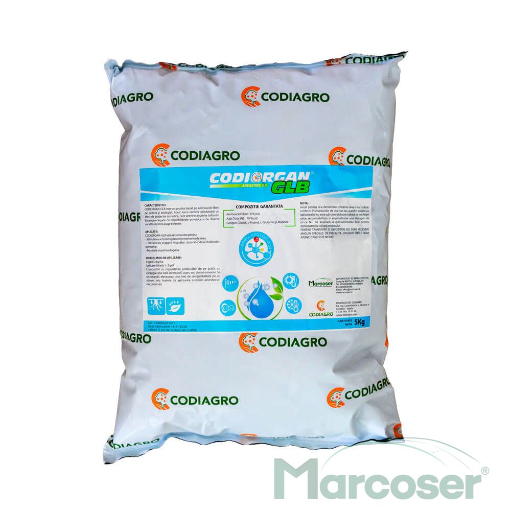Codiorgan-GLB este un produs bazat pe aminoacizi liberi, de sinteza si biologici, ce este recomandat pentru stimularea activitatii plantei in momente de stres, imbunatatirea legarii fructelor in conditii mai putin prielnice, prevenirea craparii fructelor cauzata de dezechilibre osmotice si pentru protectie impotriva temperaturilor extreme.