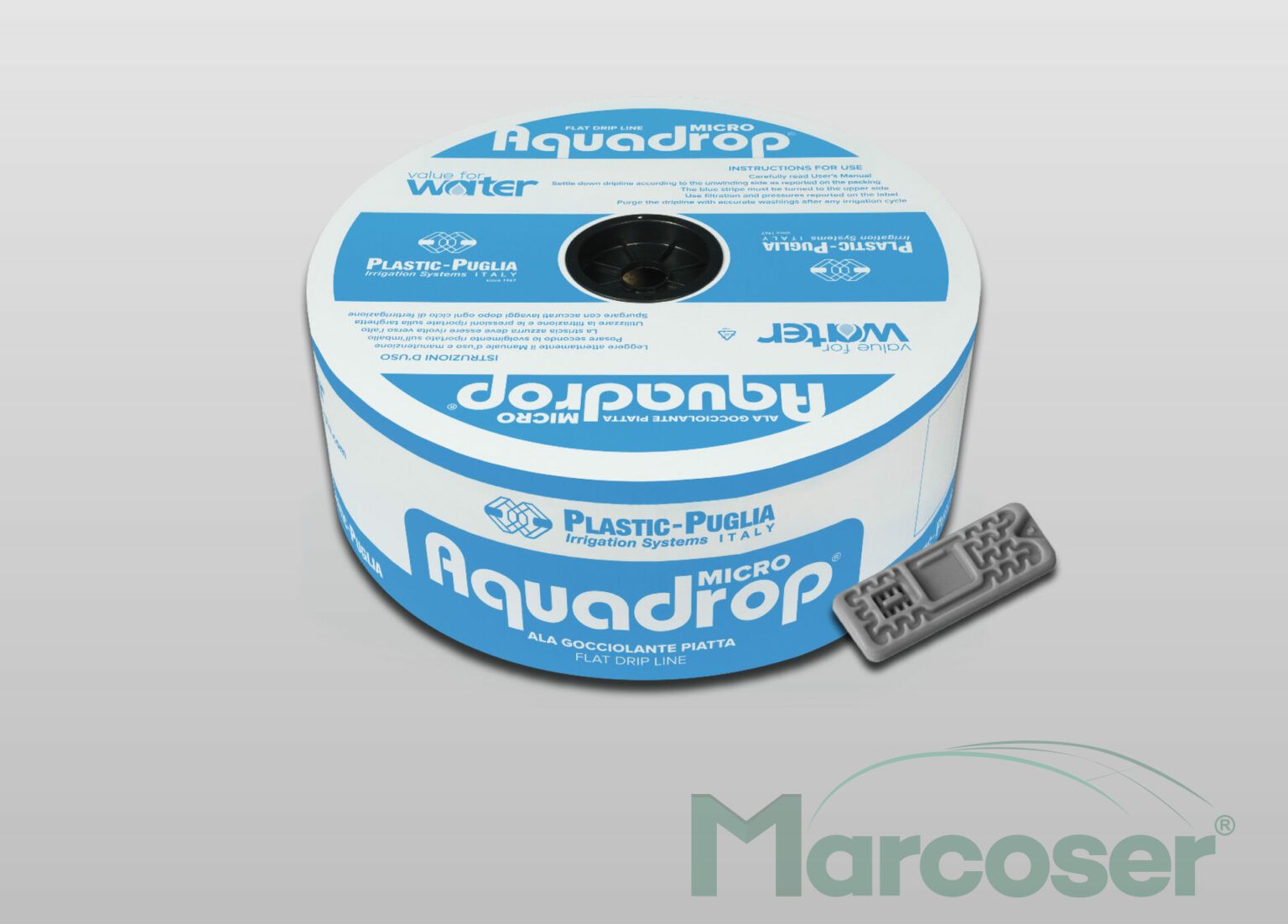 AQUADROP MICRO® (DG20) este o banda de irigare prin picurare cu emitator scurt plat cu flux turbulent, echipat cu un sistem dublu de protectie pentru a asigura o rezistenta ridicata la colmatare.