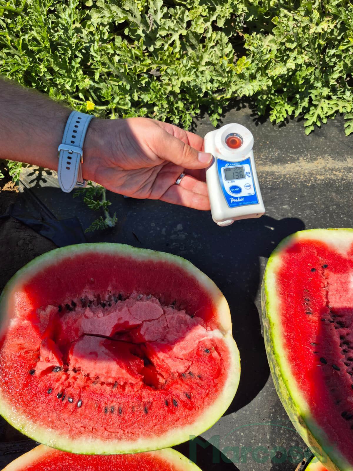 Olympia F1 poate avea fructe cu greutatea de 7-10 Kg, culoare pulpa rosu cu un brix intre 11-12˚, avand o toleranta la transport buna.