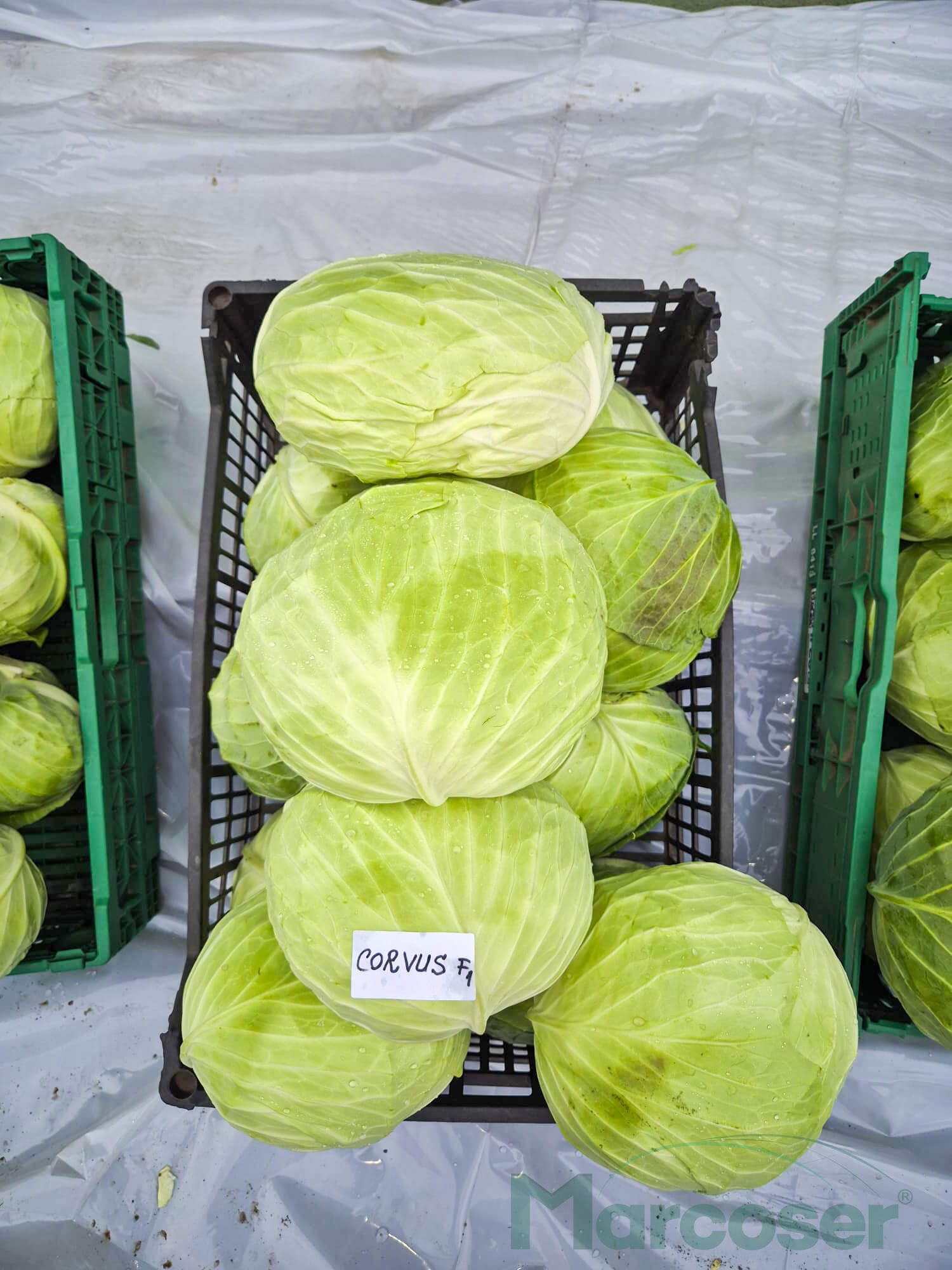 Corvus F1 este un hibrid de varza turtita, cu capatani foarte uniforme si greutate peste 3 kg.